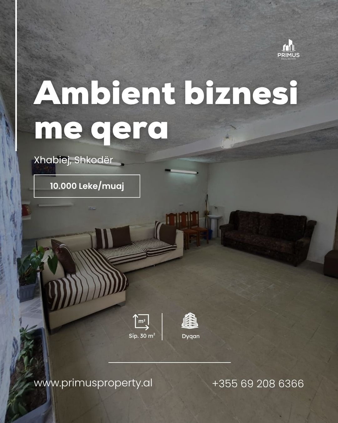 🏢 Jepet me qira dyqan 30 m² në Xhabiej, Shkodër