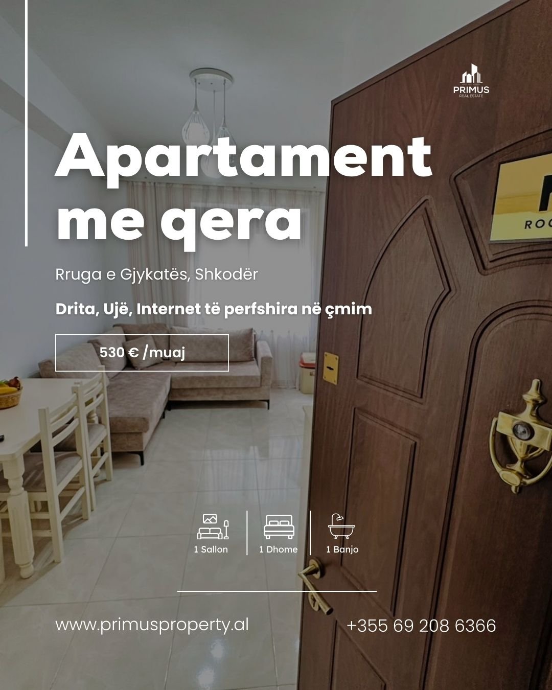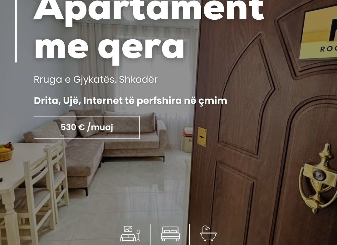 * 💶 Qira: 530 €/muaj (fatura drita + ujë + internet të përfshira në çmim)